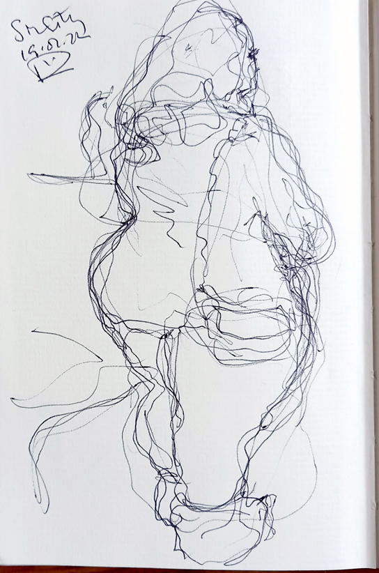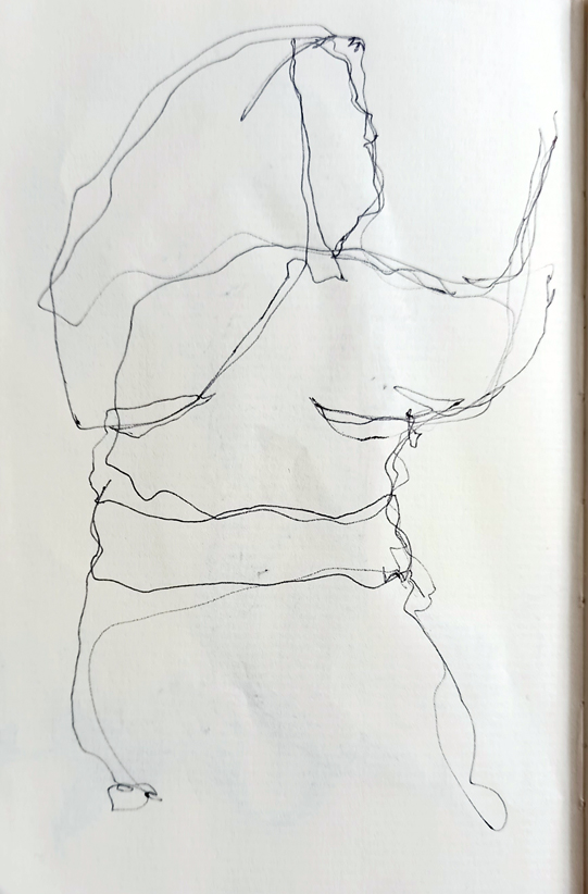 I did some quick continuous line drawings of two fans and I was drawn to them (pardon the pun) because it’s great to draw larger women, they have the presence of Neolithic Venuses.