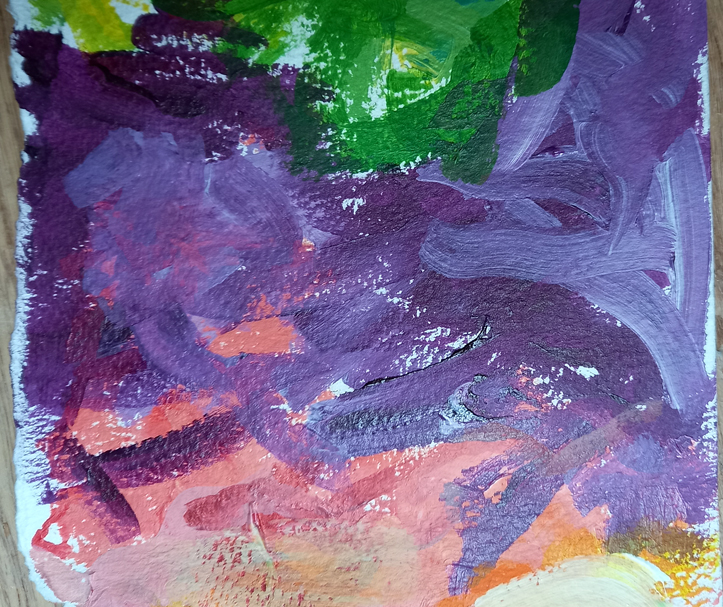 I’m making papers for collage work with scraps of Liquitex acrylic paint and Bockingford paper left over from print projects. It’s not easy for me to just randomly scrape paint on like this, I normally work very figuratively and it’s weird to do something abstract.