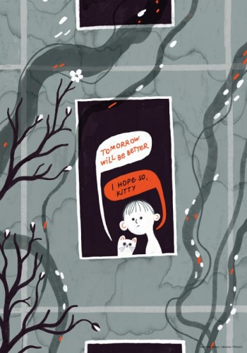 Below from left to right: Veronika Kotyk “SPRING WAR”: Romana Ruban “IN DREAM”: Yulia Tveritina “IN HAND”: Daria Filipova “WINDOW”.