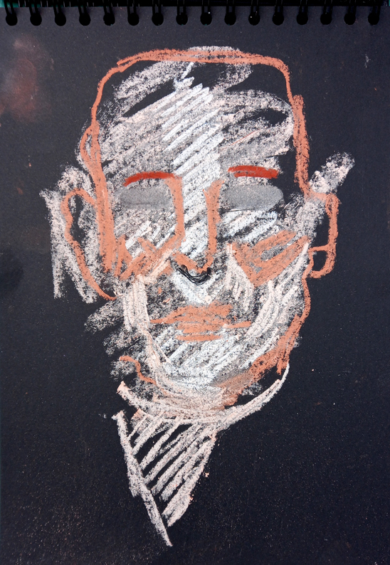 Then I had a go at sketching a head from a photo. Didn’t have time to do much today, but I’ll finish this tomorrow. I like the easy, scribbly action of the pastels, although they’re very soft and crumbly. Gorgeous though.