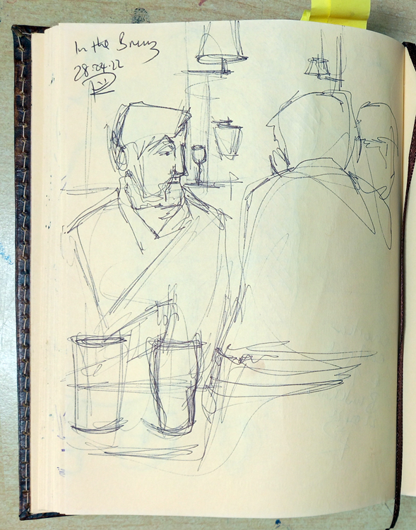 Popped into our local pub, The Brunswick Inn, for a couple of hours a few evenings ago with some family, listening to the acoustic live music and just chatting, like things were before Covid19. Of course I had a quick scribble ……