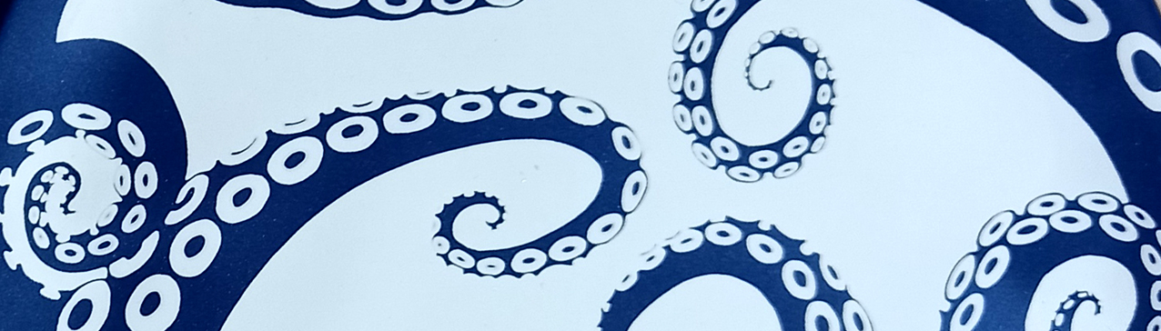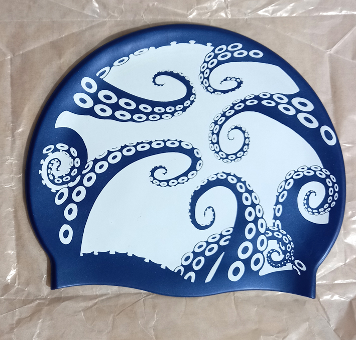 For the first time in many years, I went into the sea a couple of weekends ago. I’ve never learnt to swim, despite living right by the sea for most of my life. The film Jaws didn’t help. I saw it when I was in my teens and convinced myself that great white sharks could snatch me from Swansea Bay. But Husb made me a makeshift float from some polystyrene packaging and I’ve been sort of swimming – ish. But I needed a swimcap so I ordered one from a Facebook chum, the artist Nancy Farmer who has some fab stuff on her Etsy shop. I’m looking forward to getting these tentacles wet this weekend.