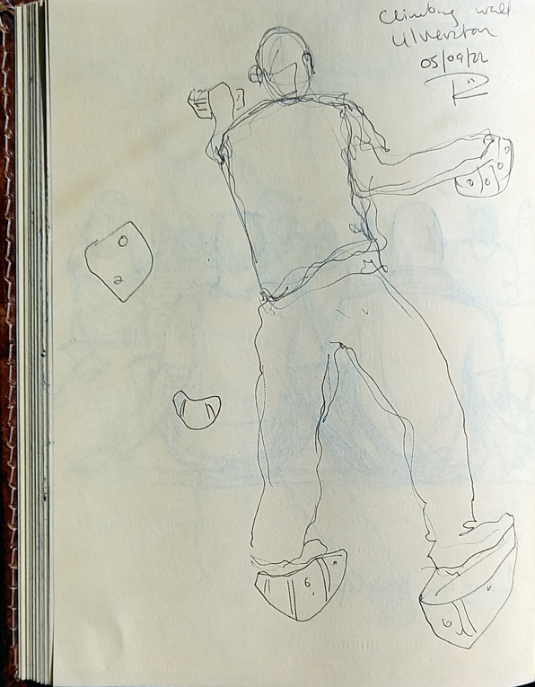 Posted byRosie ScribblahPosted inArty Stuff, out and about, People watching, sketchingTags:@RosieScribblah, @womensart1, art, bouldering, climbing, creativity, drawing, en plein air, kunst, Lake District, Rose Davies, sketchbooks, sketching, speed sketching, The Wall, Ulverston, Wales, Welsh artist, women artists