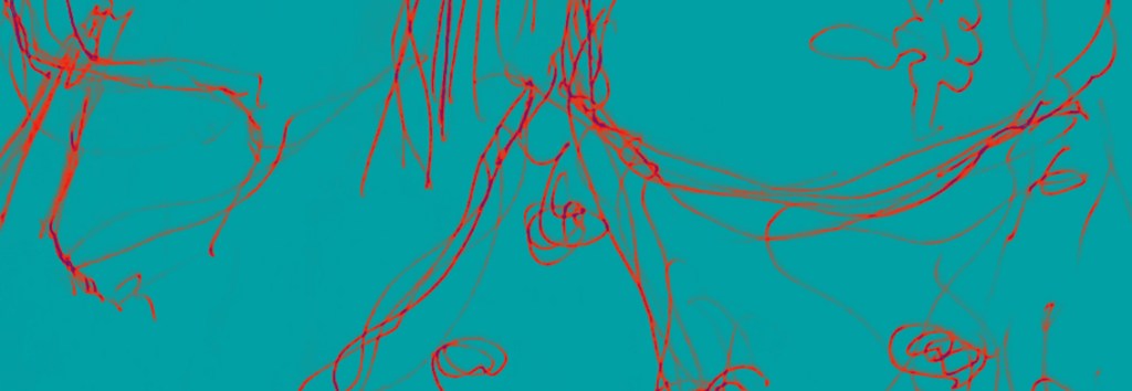 I cropped a section of the drawing in Adobe Photoshop and put it through a Gradient Map. It takes on a life of its own; apart from the colour changes, it also has a 3D quality from the lighter scribbles.
