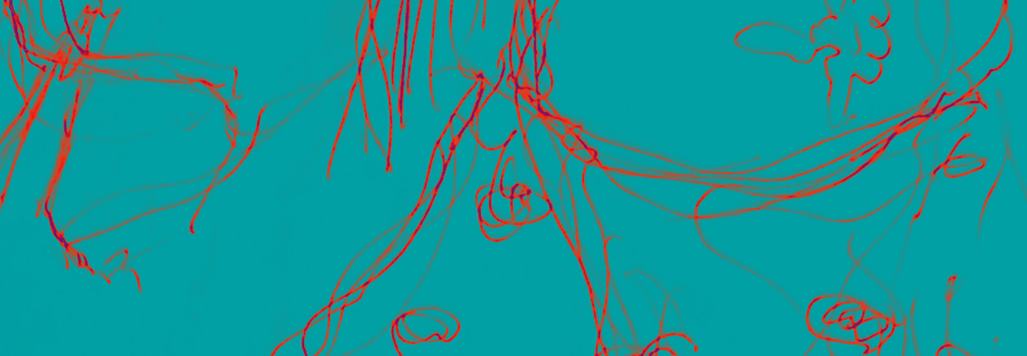 I cropped a section of the drawing in Adobe Photoshop and put it through a Gradient Map. It takes on a life of its own; apart from the colour changes, it also has a 3D quality from the lighter scribbles.