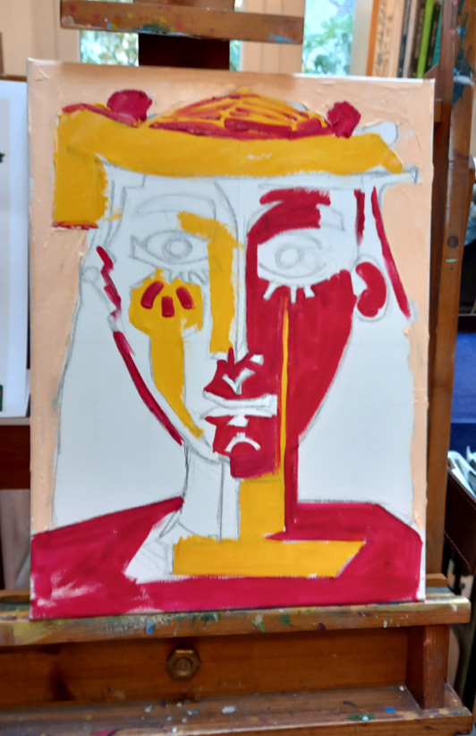 Ed Sumner’s “Cheese and Wine Painting Club” is back on Facebook! Brilliant. Ed started it during lockdown and ran it every Friday for about 18 months. Since lockdown ended and we’ve all been getting back to what we were doing before, Ed has only done an occasional one, and today was one of those days! We copied a portrait of a woman by Pablo Picasso.
