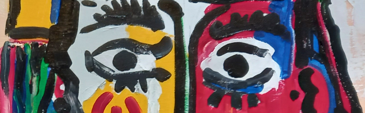 We started by drawing the head in pencil, unusual as Ed normally gets us straight into the paint. But once the drawing was done, it was easy to fill in the colours, a bit like painting by numbers to be honest. I’m chuffed, it’s so much fun and I learn loads about handling paint. It needs a bit more faffing, maybe another half hour or so and I’m done.