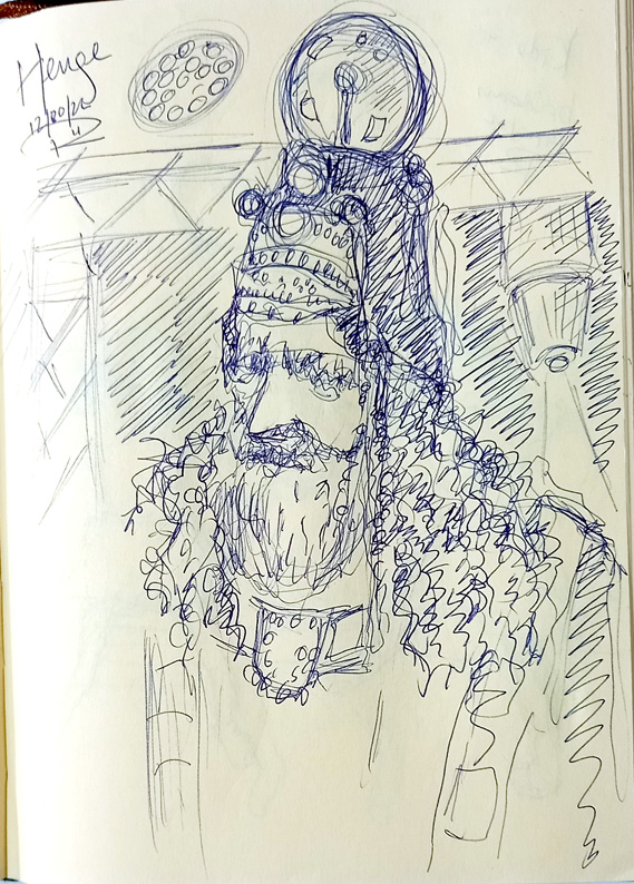 Husb and I went to Hangar 18 at the weekend to see an alien band called Henge. They were brilliant – sort of cosmic psychedelic high energy rave-rock with a big dollop of humour. I did a scribble of the lead singer. I’m loving getting back to going to gigs, I realise how much I missed it during almost 2 years of lockdown.