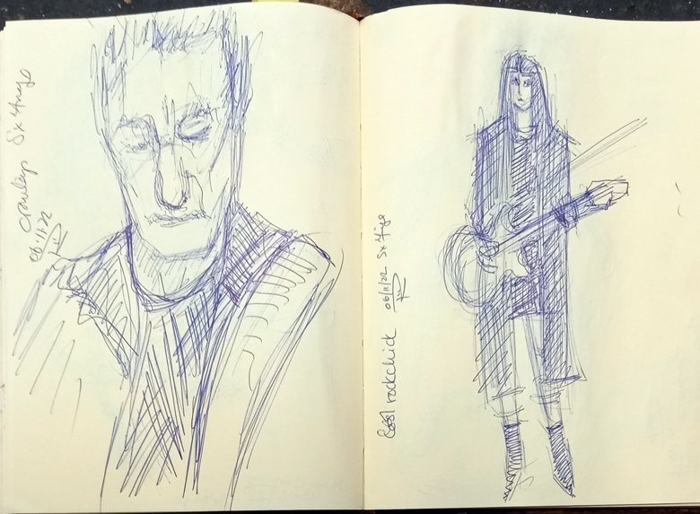 Posted byRosie ScribblahPosted inArty Stuff, out and about, People watching, sketchingTags:@RosieScribblah, @womensart1, @WomensArts, art, art practice, bass players, creativity, Crowleys Rock Bar, drawing, en plein air, heavy rock, kunst, live music, Ria Plays, rock musicians, Rose Davies, sketchbooks, Swansea, Swansea Fringe, Wales, Welsh artist, Welsh Rock