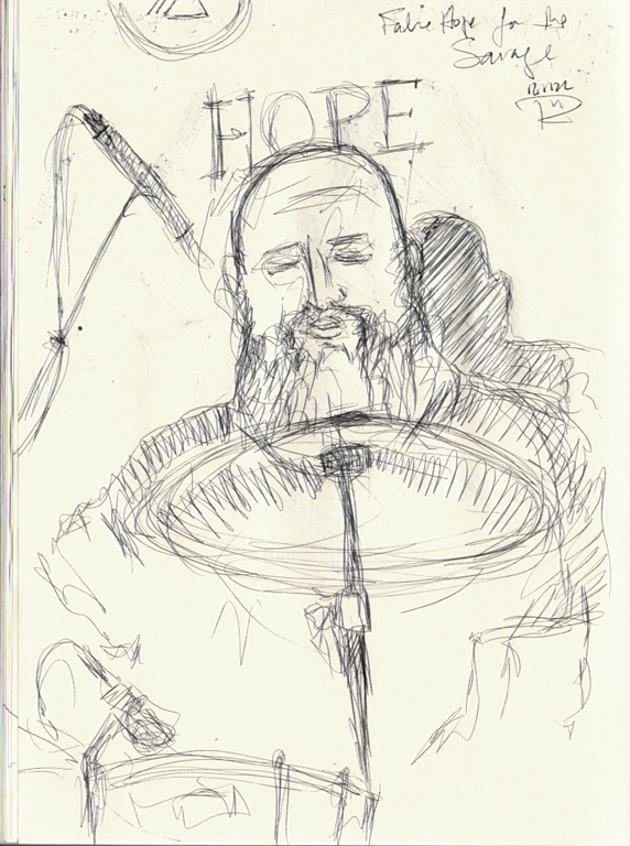 Here’s another Swansea Fringe sketch from last weekend’s after-party. Drummers are often shoved to the back and it’s hard to get a good line of sight to draw them, but “False Hope For The Savage” gave their drummer plenty of space – so much energy and a lot of fun to draw.