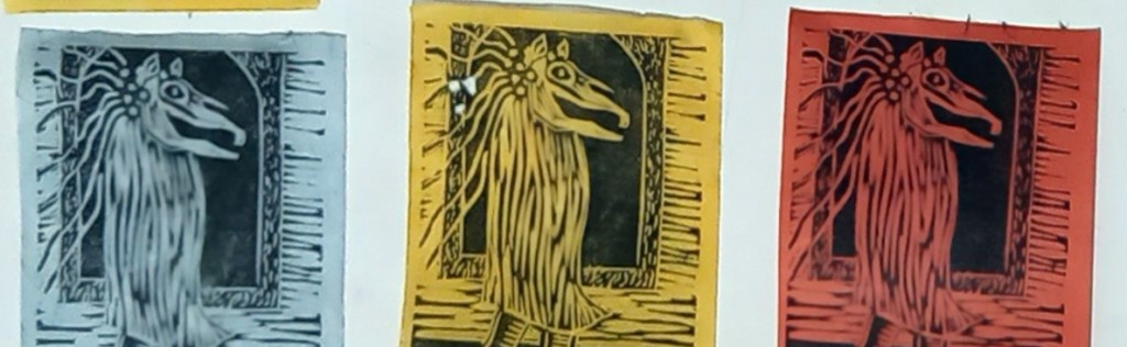 Posted byRosie ScribblahPosted inArty Stuff, At Home, Other animals, PrintmakingTags:@RosieScribblah, @womensart1, @WomensArts, art, creativity, Cymru, drawing, Hen Galan, kunst, linocut, Mari Lwyd, printmaking, Rose Davies, Swansea, Wales, Welsh artist
