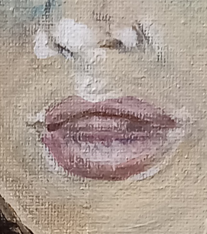 Here’s one of the stages of underpainting. It looks horrible, like something from Halloween, and she had a fit when she saw it lol 😀