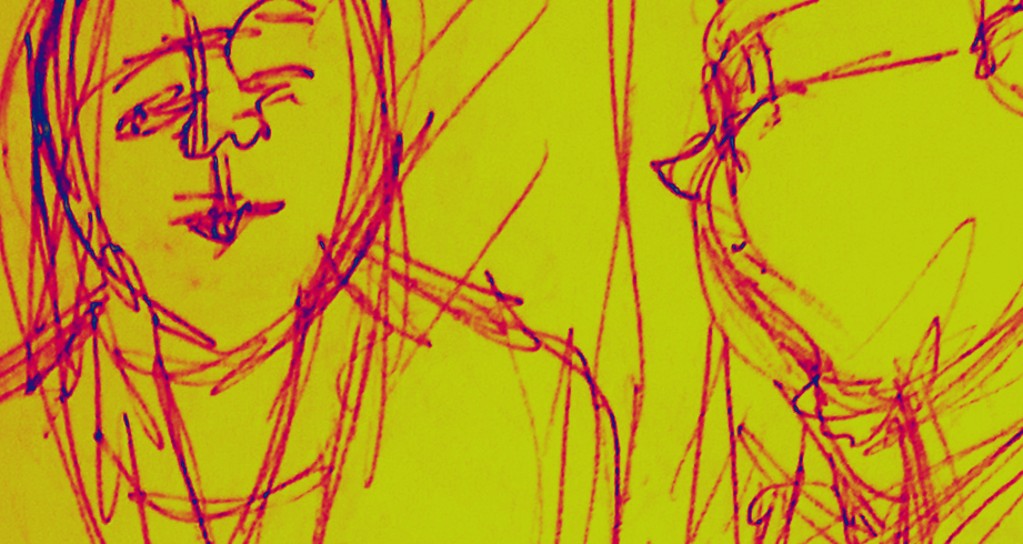 Just a couple of people standing around at the gallery the other evening. I scribbled them with a ballpoint pen into my A5 leather-bound sketchbook.