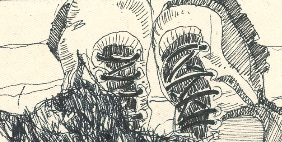 It’s #Caturday Saturday once again and here’s a drawing from ages ago when I was still using Faber Castell Pitt drawing pens. I don’t really know why I stopped, I generally use ballpoint pen now in my sketchbooks. I was chilling one evening with Sparta Puss stretched out on my lap, wearing some snazzy leggings and walking boots (me, not the cat). I liked the composition before me, so I had a scribble.
