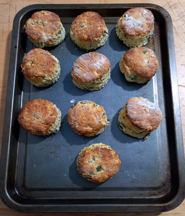 Then this morning we were up bright and early to put in a couple of hours on the allotment. I gathered some of the first wild garlic, Ramsons, in the woods around the site and made them into scones with parmesan when I got home. I’m always looking for new ideas for using Ramsons each year and this is the first time I’ve tried this – they’re lovely even if I say so myself 😀