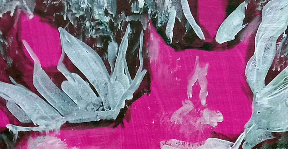 I have had a nasty cold the past few days and I wanted to do something to occupy myself that was fun so I decided to paint Sparta Puss from a photo where she’s posing in front of some beautiful tulips. I started with the canvas I recently covered in an opaque Magenta ground (here).