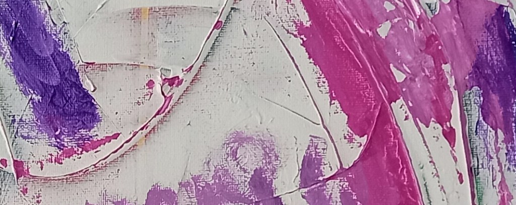 I recycled a couple of canvasses I didn’t like a while back, ready for some new painting projects. I scraped a load of acrylic gesso over the surfaces, deliberately leaving them textured. Then I daubed one of them with some leftover pinks and purples from another painting I’m working on – waste not want not. This is the one I’ll continue with.