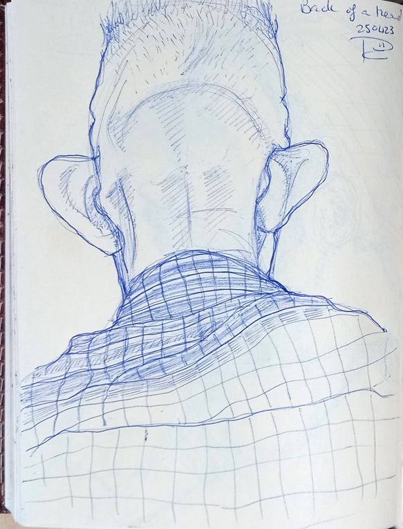I often sketch when I sit behind people in audiences, but rarely get to draw such a magnificent pair of ears.