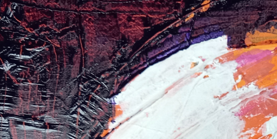 I carried on with a little bit more of my current painting, a nocturne with a fiery figure. I laid some Dioxazine Purple (translucent) onto the Cadmium Orange (opaque) ground with a palette knife and a couple of flat brushes, scraping it to let some of the orange show through.