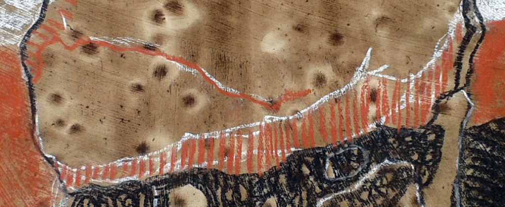 It’s Standing Stone Sunday on social media again and I’ve chosen a strange little drawing I did of a relatively local monument, Maen Ceti (Arthur’s Stone) at Cefn Bryn on the Gower Peninsula. It’s a huge magnificent megalith in beautiful countryside and it’s easy to get distracted and concentrate on the surroundings when I’m drawing or painting. This time I made a conscious decision to do something different and played around with making interesting marks. I started with a piece of paper prepared with gesso and my homemade walnut ink and build on that background with conte crayons in black, white and sanguine.