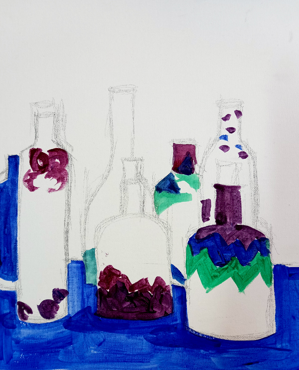 I’m using Liquitex Heavy Body acrylic paint onto a canvas board, although I began the painting in Daler Rowney System 3 acrylic ink.