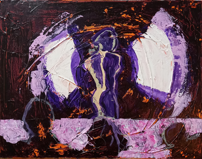I carried on with the nocturne painting by scraping on some pinks with a palette knife. It wasn’t planned, I had some Titanium White, Medium Magenta and Dioxazine Violet left over from another painting and as always, “waste not, want not”. I’m not sure if the colour will make it though to the final piece but it will add to the texture and give richness and depth to the colour.