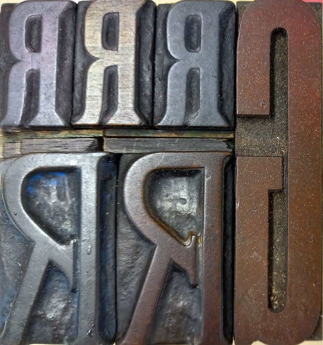 Here are the gorgeous vintage wooden letters. I cleaned them up a bit with very fine wire wool and a little vegetable oil. It took off dried-on ink and dirt but kept the lovely patina.