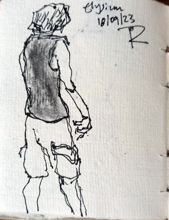 Posted byRosie ScribblahPosted inArty Stuff, out and about, People watching, sketchingTags:art, arts practice, artworks on paper, celf, creativity, drawing, Elysium Gallery and Bar, en plein air, kunst, rock music, Rose Davies, sketchbooks, Tags:@RosieScribblah, Tags:@womensart1, Tags:@WomensArts, women artists