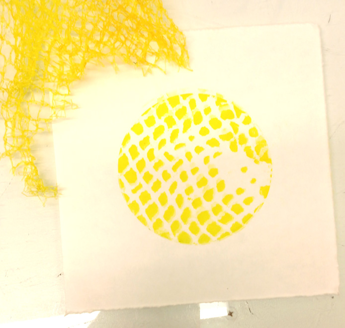 The yellow and red layers were textured with plastic nets (that onions are sold in) and the final blue layer was textured with bubble wrap.