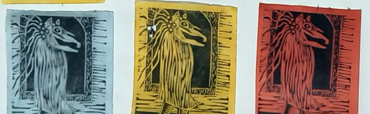 Posted byRosie ScribblahPosted inArty Stuff, At Home, Other animals, PrintmakingTags:@womensart1, @WomensArts, arts practice, creativity, Hen Galan, lino block, lino cuts, Mari Lwyd, printmaking, Rose Davies, Tags:#Welshart, Tags:@RosieScribblah, Wales, Welsh artist