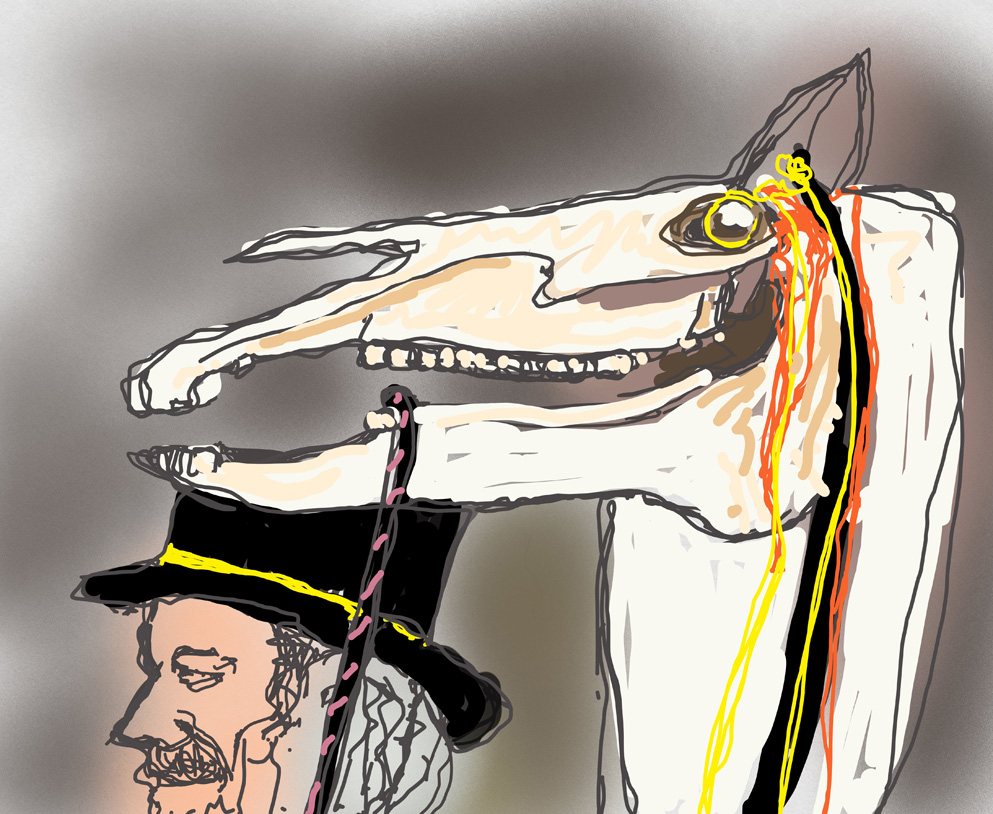 I took some digital photos at the Wassail and Mari Lwyd parade in Chepstow yesterday and I’m using them to try out the CONCEPTS free graphics package. Husb downloaded it for me a few months back but I haven’t done much with it yet. It’s weird using a stylus and the angle of drawing onto the screen is a bit strange too. The airbrush is odd, it lets me cover some areas and not others. I suppose I should watch a YouTube tutorial, but I get so impatient.