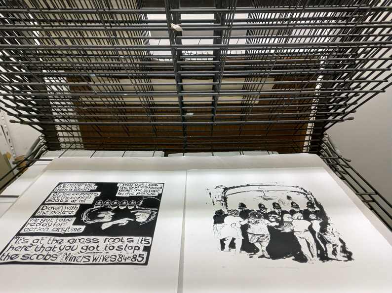 Pulled a couple of long sessions down at Swansea Print Workshop yesterday and this evening to finish these two before the deadline tomorrow – linocut on the left and screenprint on the right. Was supposed to do them last week but had an accident and got concussion! Never mind, all done.