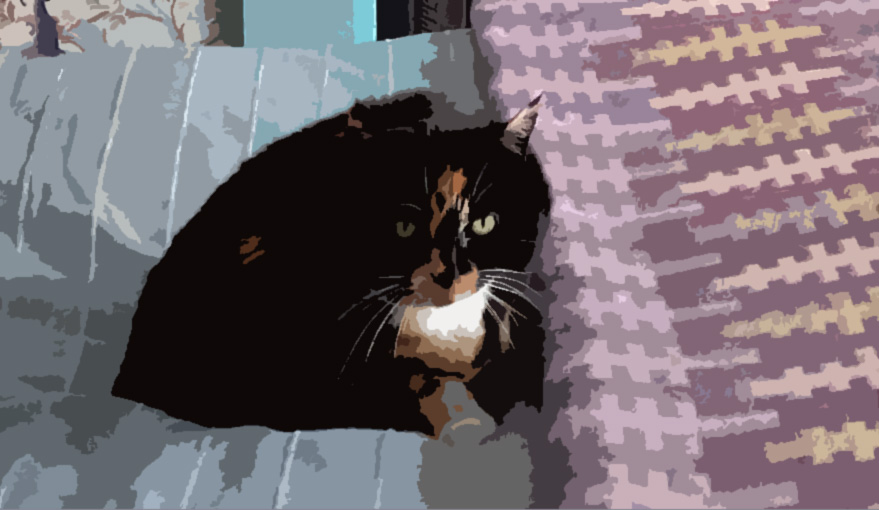 In case you’re interested, the wallpaper is Laura Ashley and the blanket by Melin Tregwynt. And I got them both in a sale …. which makes me happy 😀 And the cat is Sparta Puss.
