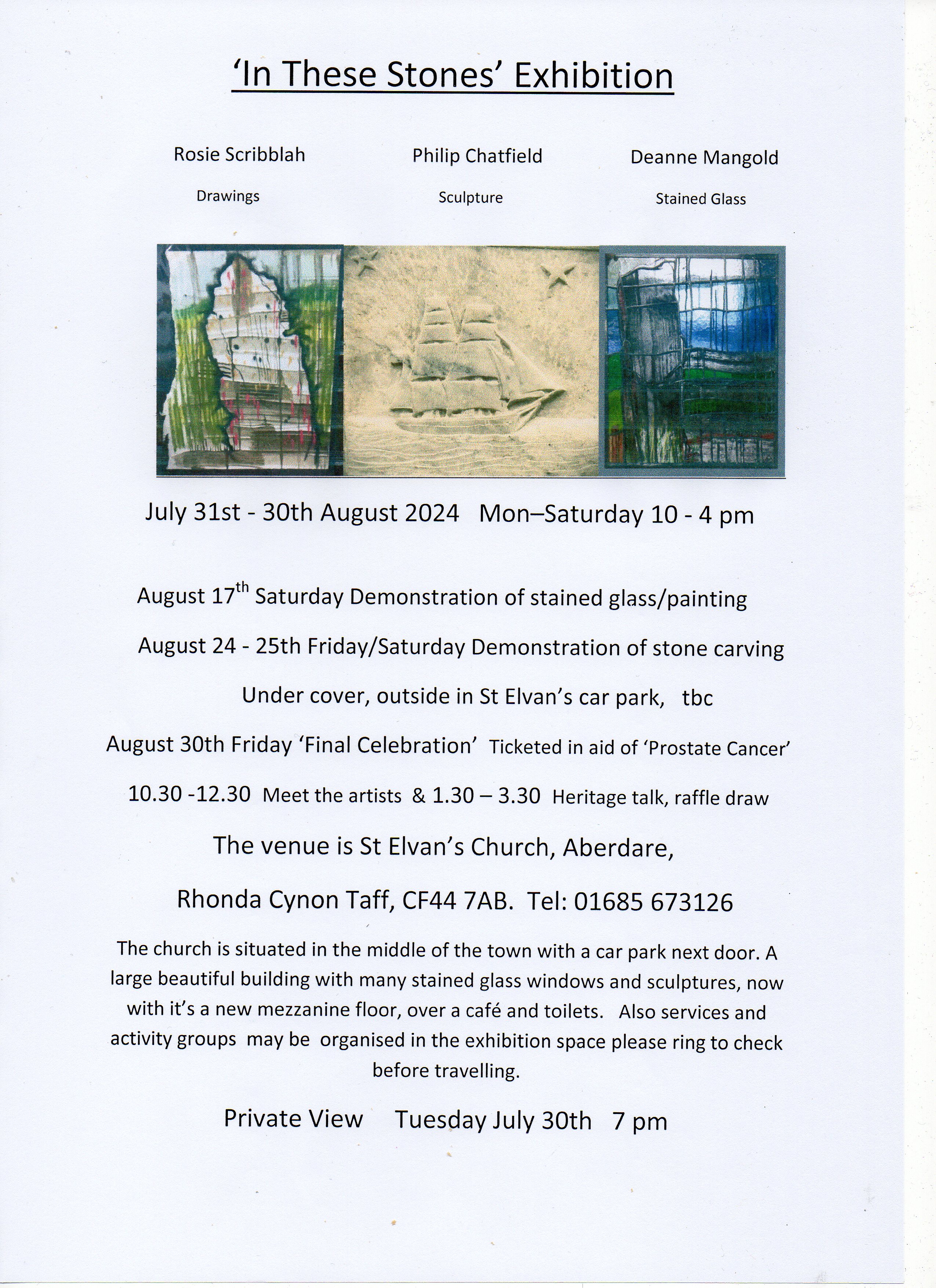 THE PRIVATE VIEW IS NOW ON TUESDAY, JULY 30th AT 7pm. You are very welcome to join the artists at the launch of our exhibition in Aberdare.