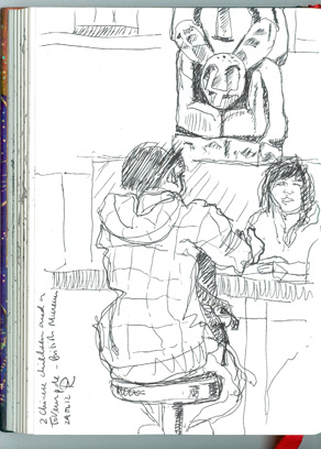 Here’s a selection of sketches I first posted in March 2012, although they weren’t all drawn then. I began blogging in July 2011 to post my sketchbook drawings, so I was picking out examples going back years. These are drawings en plein air. I seemed to do a lot more back then. I think I got out of the habit of going out and about so much during the Covid lockdowns.
