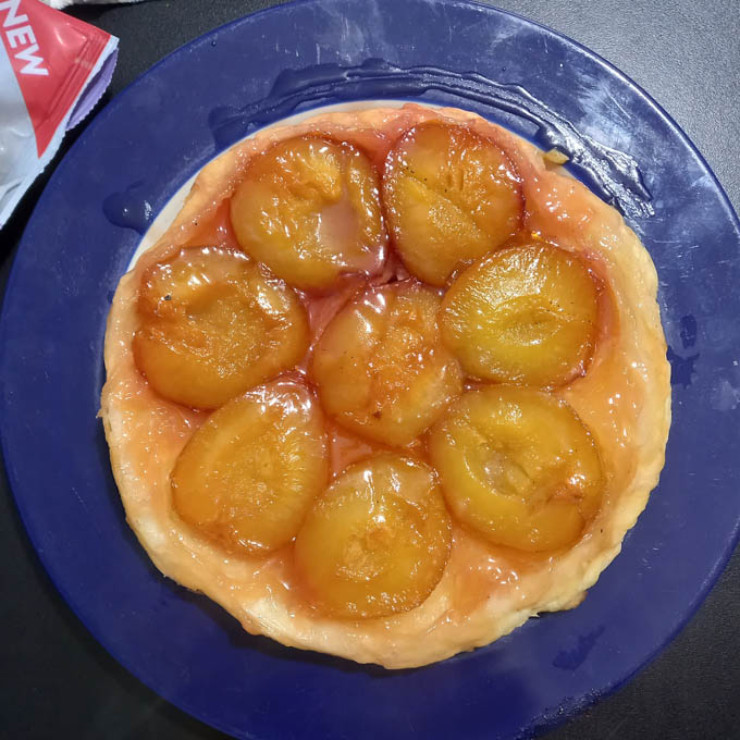 It’s definitely Autumn now, we’ve had thunder, lightening and torrential showers through the afternoon and evening so I thought it was time for some seasonal comfort eating, so I made a plum tarte tatin for tea. It was lush. The secret is to part cook the plums in the pan in lots of butter before adding sugar, topping with pastry and baking.