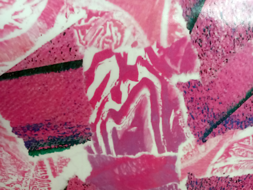 I’m an educator as well as an artist and I work a couple of days a week for a national homelessness charity as an arts tutor. Over the past few months I’ve been working with a group of other staff and our members (service users) to develop an exhibition for The Senedd, the Welsh Government building in Cardiff. Amongst other things, we’ve made a giant display of collages that are exhibited on 4 enormous panels, about 4 metres high. The starting point for this process was back in the summer, when I introduced the technique of gel-plate printing and over the weeks we made gelprints from random textures, wooden carved blocks, local plants, whatever would make an interesting impression. See more here.