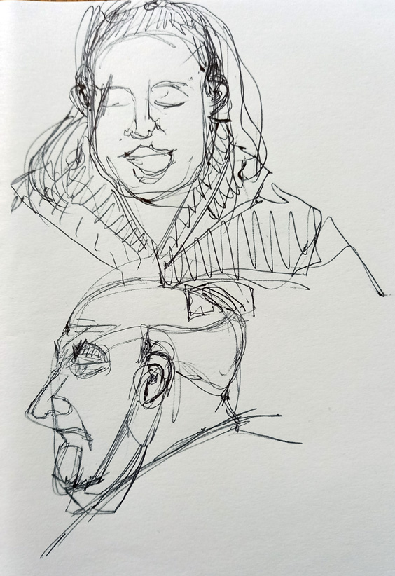 A couple more head sketches from yesterday’s visit to our local A&E department (nothing serious as it turned out). People are quite still and easier to draw.