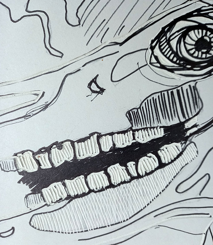 I did some more drawing on my new Mari Lwyd linocut, it is almost finalised, and I got on with some more carving today. I rarely complete the drawing before I start carving because I often want to change some of the design when I see it starting to take shape on the block. Some printmakers make very precise designs but I like to allow for some spontaneity when I’m printmaking.