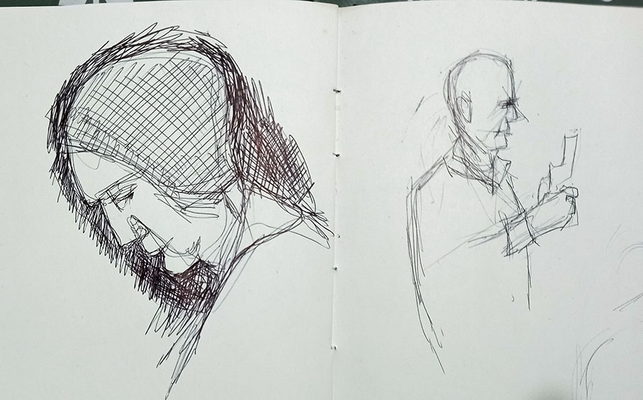 A couple of scribbled heads from Friday evening, the gig of fabulous local band Omnichron.