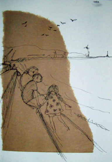 A few more sketches from my “brown paper phase” back in July 2013. It’s ordinary brown wrapping paper stuck into sketchbooks with Pritt stick glue. I should do it again, it’s very effective. Fortes is an ice cream parlour in Limeslade, west Swansea, one of the Welsh Italian ice-cream families.