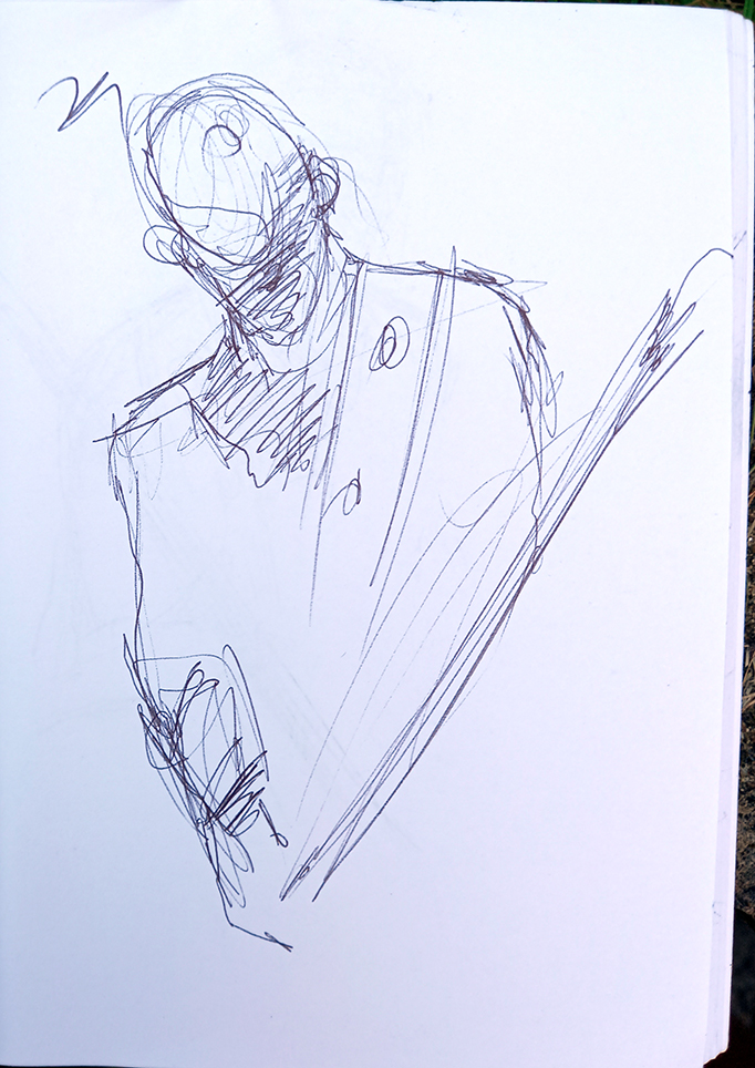 This was scribbled at a gig Husb and I went to at Elysium last night. It was bloomin’ fantastic. This guy is from Goat Major, an “occult doom / stoner metal” band.
