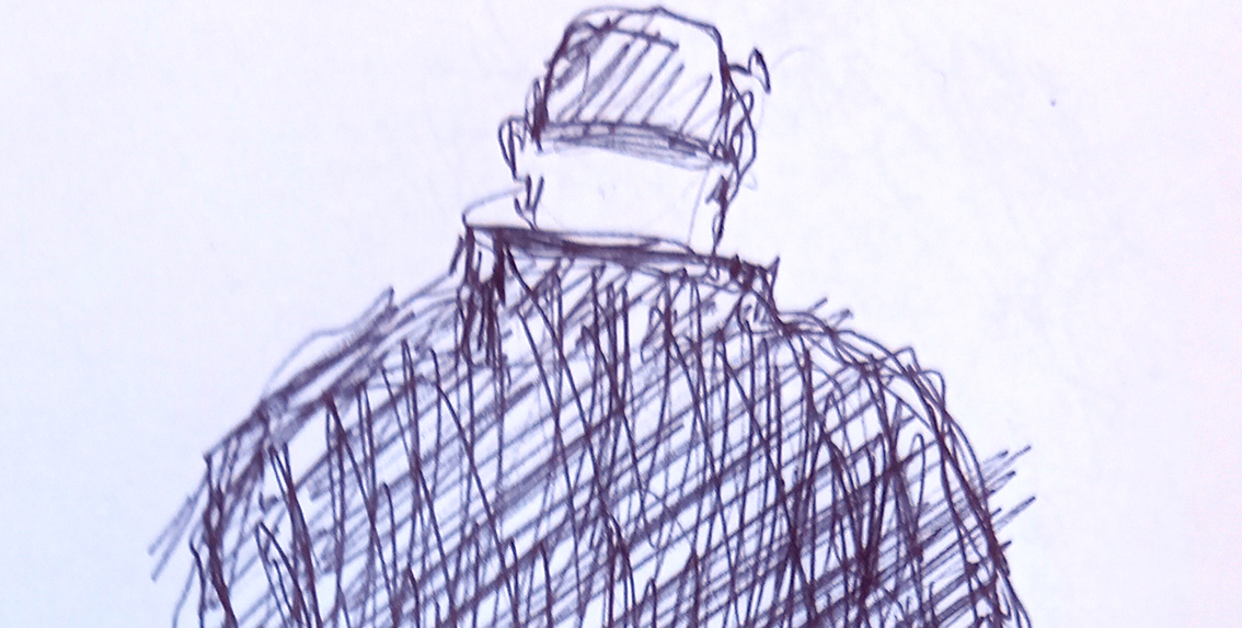 This guy at the recent gig at Elysium had a great stance, so I scribbled him. I was listening to the band “Goat Major” at the time and really getting into the “occult doom/stoner metal” groove as I scribbled away, it made my pen strokes much more intense, I think.