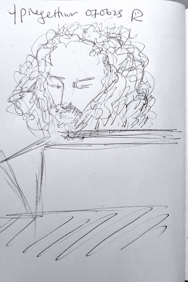 I was off gallivanting at a gig (no surprises there) the other week and had a quick scribble as I listened to a solo musician called Y Pregethwr (The Preacher) who played an extraordinary, haunting and avant garde set.