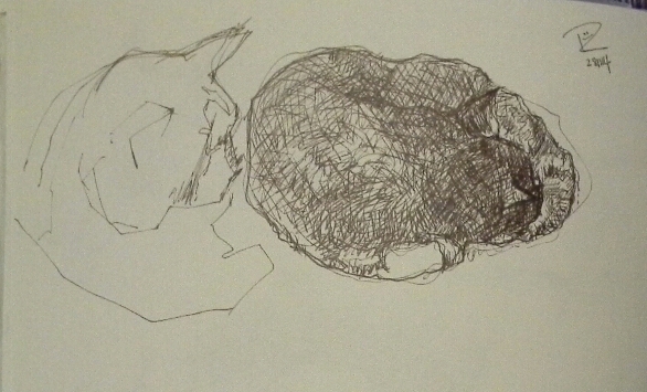 Here’s a #Caturday Saturday sketch from November 2014 of SpartaPuss having a snooze. I started it when she was awake but had to abandon it and restart when she dozed off.