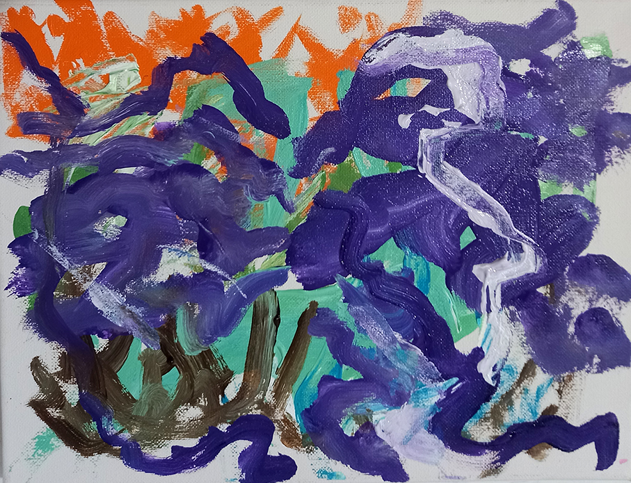 I did a bit of painting today, using Liquitex Heavy Body onto a canvas board and I had little bits of paint left over. It’s very good paint, I didn’t want to waste it so I scraped it onto a small stretched canvas with a palette knife. Instant abstraction. It looks a bit spidery to me. I wonder if I should work into it, see what happens, like the Surrealists did?