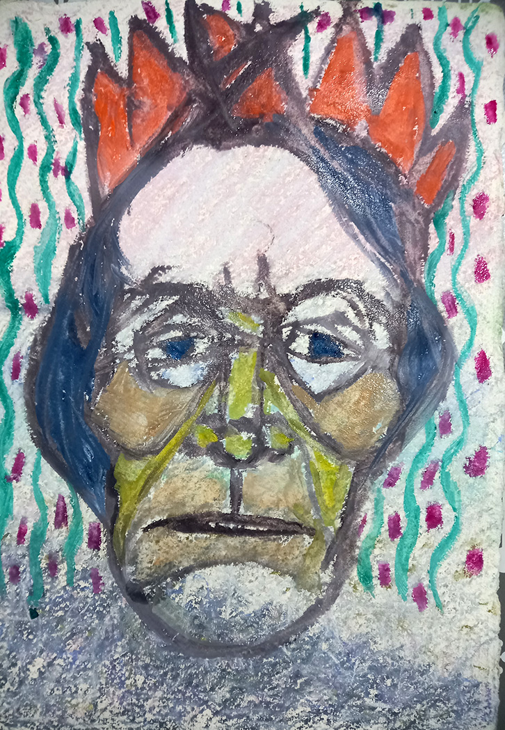 I was playing with some Derwent Inktense blocks the other day, using them to draw on top of a very bland pastel drawing that I didn’t like. I let my imagination lead the way, which is something I rarely do and should do more often. It’s Christmas so I put my imaginary head in a paper hat, like the ones you get out of a Christmas cracker.