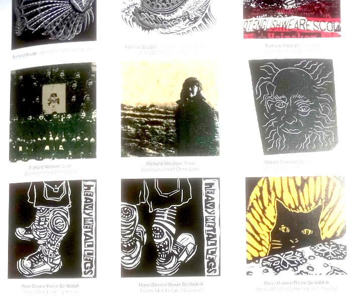 I have three linocut prints in the Miniprint Cymru Wales exhibition in Mostyn in Llandudno, North Wales, open until May 2nd. It includes one of my linocuts of our cat Bill, aka William Chatnoir. You can see my linocuts below in the catalogue.