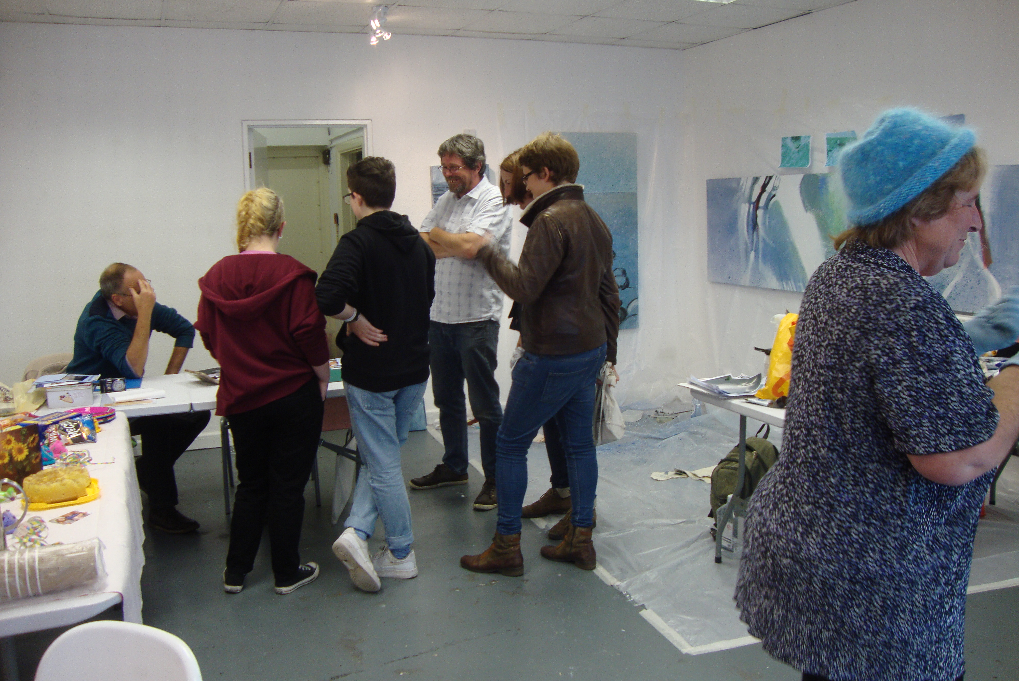 Previous Image Next Image DSC09118 Visitors move from artist to artist, looking at techniques and inspirations