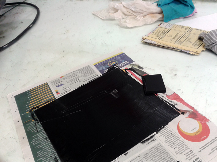 Inking the plate with a mini squeegie